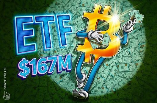 Spot Bitcoin ETFs add $167M, nearly erase last week’s outflows Trending Spot Bitcoin ETFs add $167M, nearly erase last week’s outflows